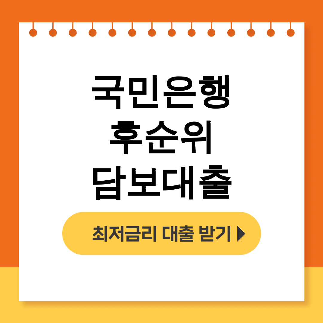 요즘 핫한 국민은행 후순위 담보대출, 기본 조건부터 신청 절차까지 알면 편리하겠죠? 간단한 서류와 승인 팁도 준비했어요.