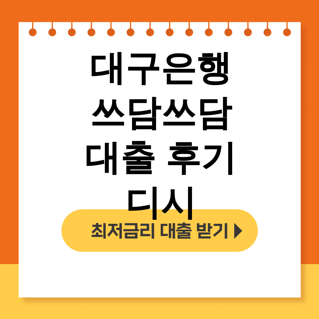 📌 대구은행 쓰담쓰담 대출 후기 디시: 필수 조건 한눈에 보기